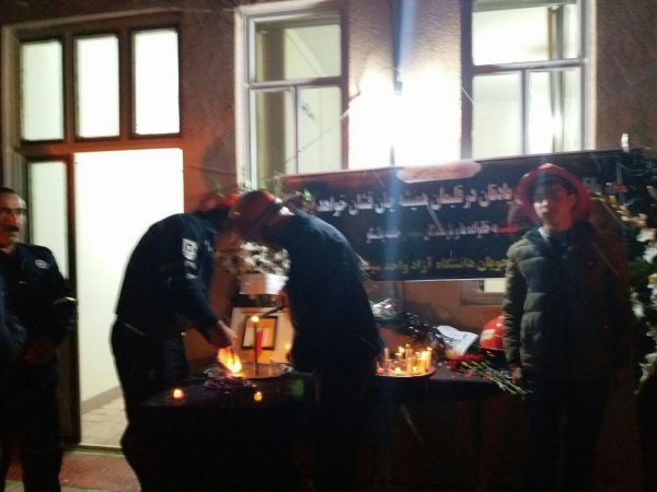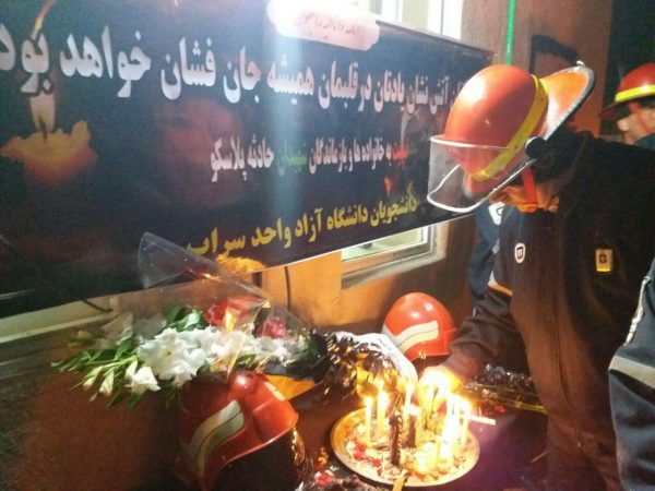 در این مراسم که در محل آتشنشانی شهرسراب و با حضور مدیرعامل آتشنشانی سراب و همچنین تعدادی از پرسنل آتشنشانی برگزار شد جوانان سرابی و برخی از اعضای تشکلهای مردمنهاد به سوگ شهیدان آتشنشان در این حادثه غمانگیز نشستند.
