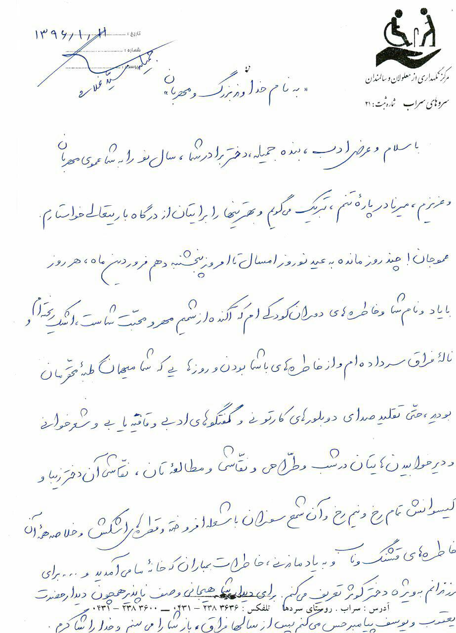 پایان فراق ۲۵ ساله عمو و برادرزاده در سالمندان سراب + نامه عاشقانه شناسه خبر: 45744 تاریخ و زمان ارسال: 21 فروردین 1396 ساعت 13:28 نویسنده: modir