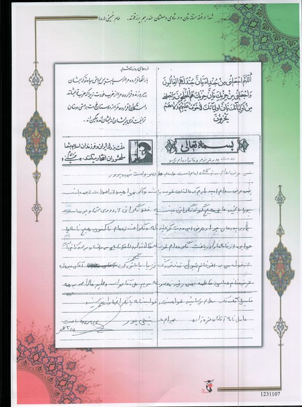 پدر بهرام حسینقلی پور خاطرنشان کرد: شهید بزرگوار همیشه به حجاب توصیه می کرد و پشتیبانی از انقلاب و ولایت فقیه را بزرگترین وظیفه عنوان می کرد.