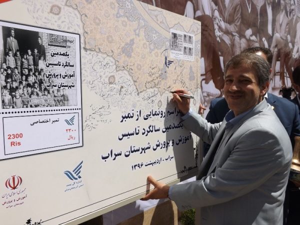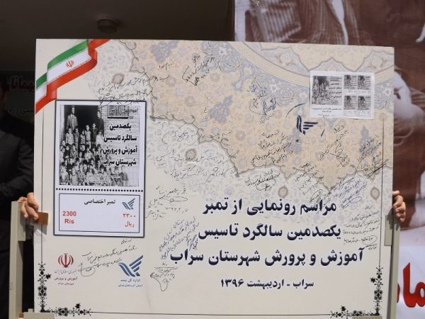 در این مراسم ضمن رونمایی از تندیس یکصدمین سالگرد تاسیس آموزش و پرورش سراب از تمبر اختصاصی این مراسم رونمایی و از معلمین یکصد سال پیش این مدرسه که در قید حیات هستند تقدیر شد.