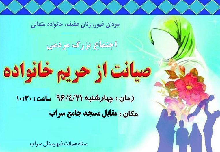 تجمع صیانت از حریم خانواده در سراب برگزار می شود شناسه خبر: 48371 تاریخ و زمان ارسال: 18 تیر 1396 ساعت 14:38 نویسنده: modir ت