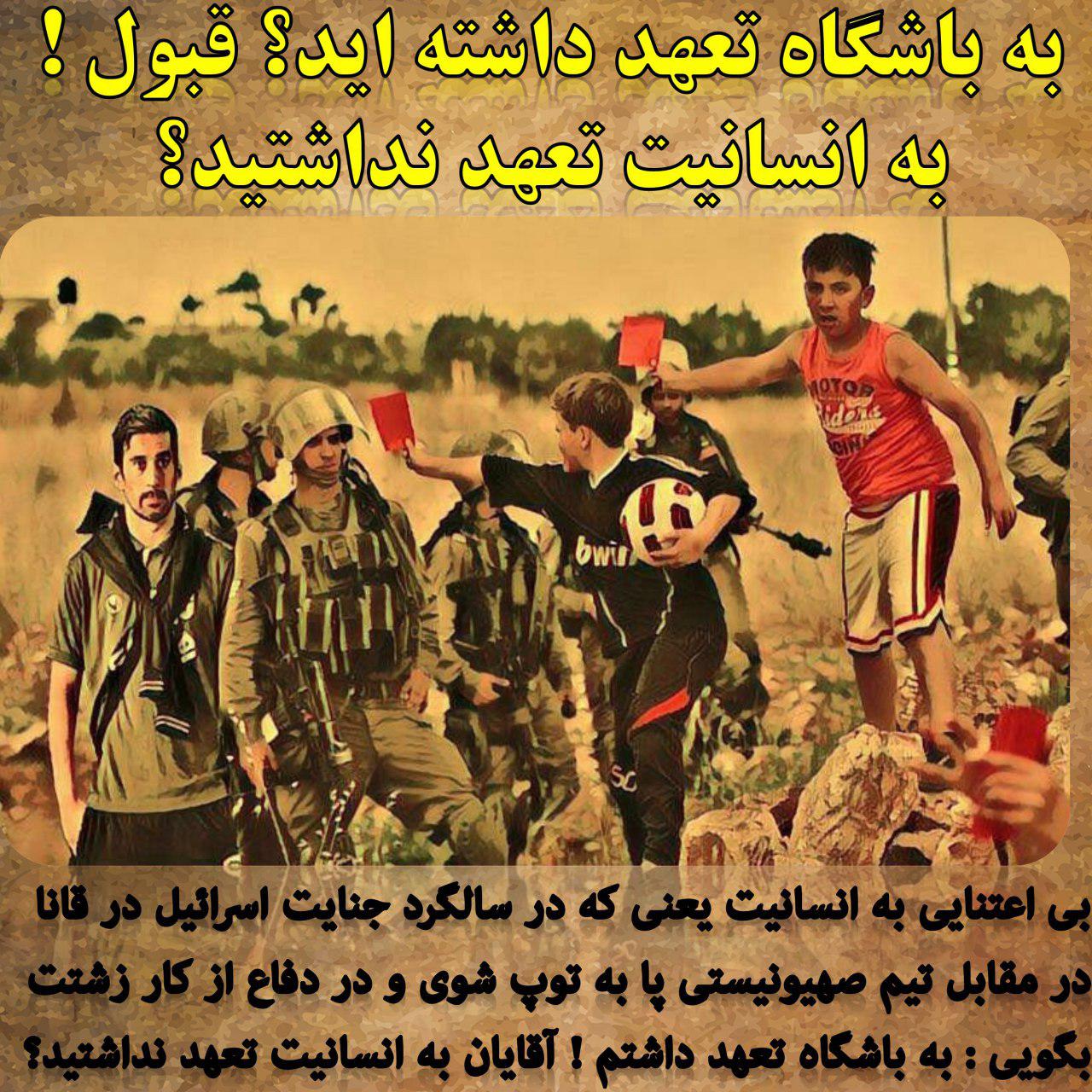 دو بازیکن تیم ملی فوتبال چطور توانستند با نادیده گرفتن ظلم رژیم اشغالگر قدس به چنین اقدامی دست بزنند مگر اینان جنایات اسرائیل در حق مردم مظلوم فلسطین را ندیده اند؟!، آیا عوامل رژیم اشغالگر دست به ترور دانشمندان هسته ای کشورمان نزدند؟!