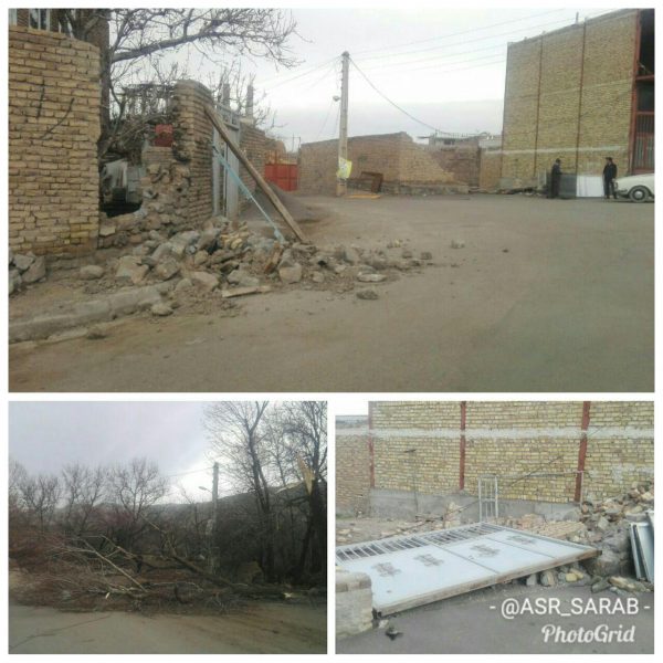 به گزارش صدای سراب, باد و طوفان شدید موجب قطع شدن برق به مدت چند ساعت و فرو ریختن برخی دیوارها و شکستن درختان در اسبفروشان شد.