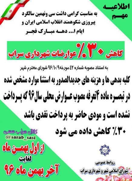 کاهش ۳۰ درصدی اخذ عوارضات شهرداری سراب در ماه بهمن شناسه خبر: 52206 تاریخ و زمان ارسال: 3 بهمن 1396 ساعت 13:34 نویسنده: modir