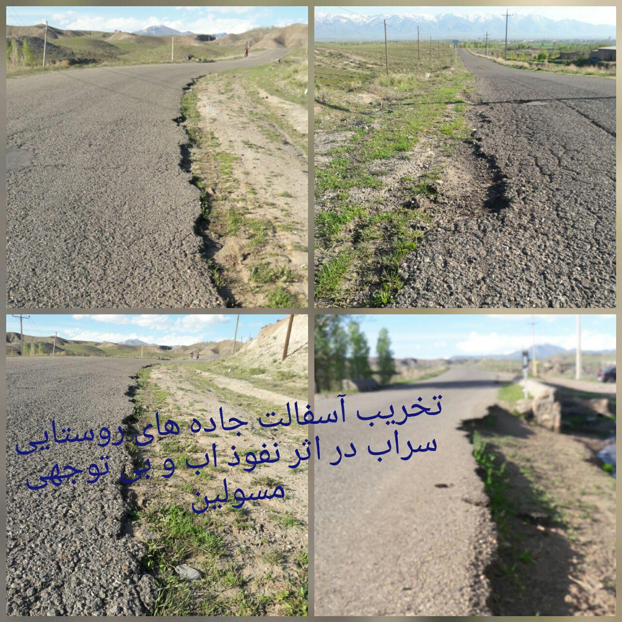 تخریب اکثر جادههایروستایی شهرستان سراب در اثر نبود آبرو و حاشیه مناسب کناری و نفوذ مداوم جریان آب به سطح جاده، سبب فرسایش تدریجی اکثر جاده های آسفالته روستاهای سراب شده است.