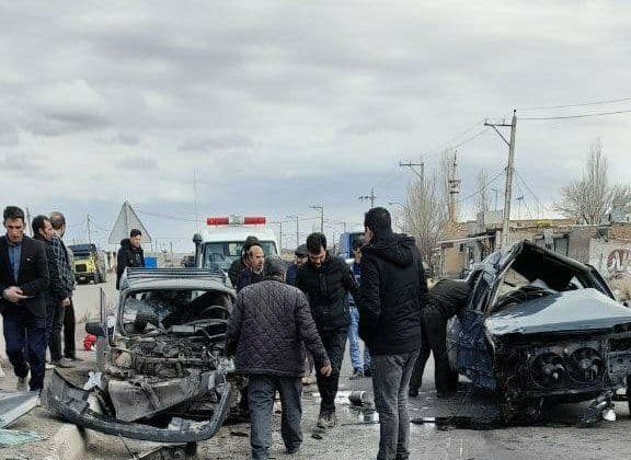 صادف شدید دو دستگاه خودرو سواری لحظاتی قبل در مسیر سراب به بهرمان در محدوده بهرمان