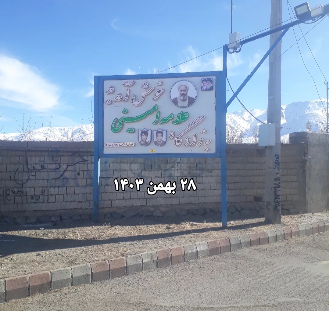تابلوی علامه امینی فخر عالم تشیع در ورودی روستای سردها در آستانه سال نو تعویض شد
