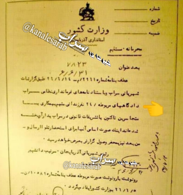 نا گفته نماند، سند فوق نشان دهنده بخشی از این پروژه قتل عام در سراب هست، روزی که ۲۴ نفر از پدرانمان در همین سراب بالای چوبه دار رفتند.